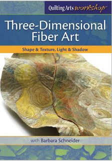 With her fiber art, Barbara has developed 2 processes that she uses to create her leaf pieces. These processes and some background on how the concept developed and fits into her overall aesthetic is the content of her new DVD "Three-Dimnesional Fiber Art: Shape & Texture, Light & Shadow"just released. You can view a snip of her dvd on the same page here.